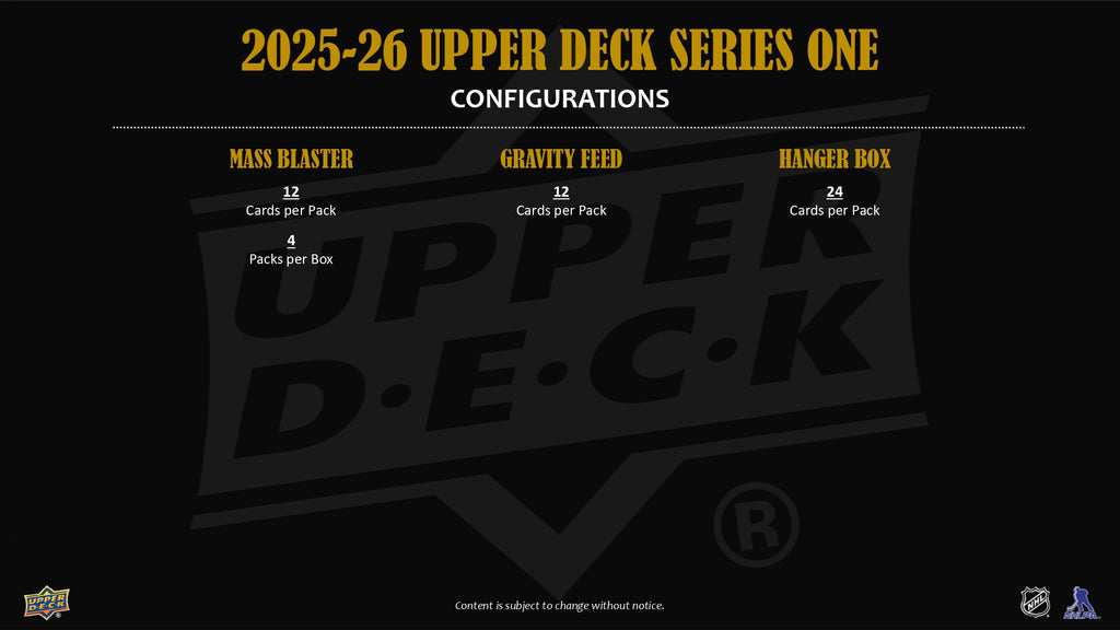Series 1 sports the first 250 cards of the 2025-26 Upper Deck Base Set. It includes 198 veteran cards, 49 Young Guns cards and three checklist cards. The iconic Young Guns are the most anticipated rookie cards of the season and the Series 1 checklist is loaded with high-end rookies!